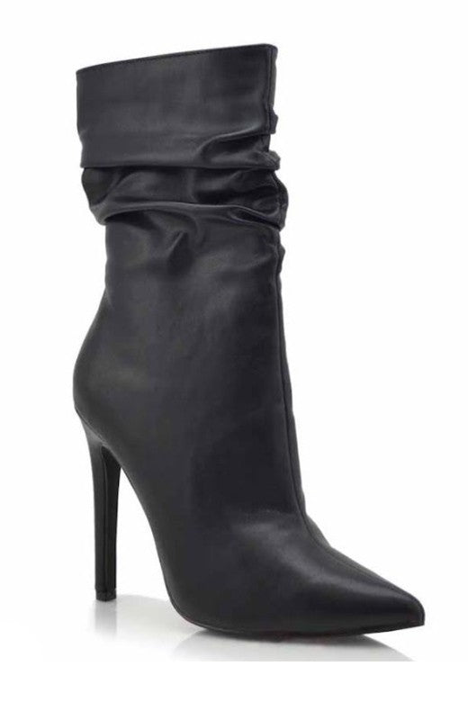 Ava Faux Leather Ruched High Heel Booties - Black