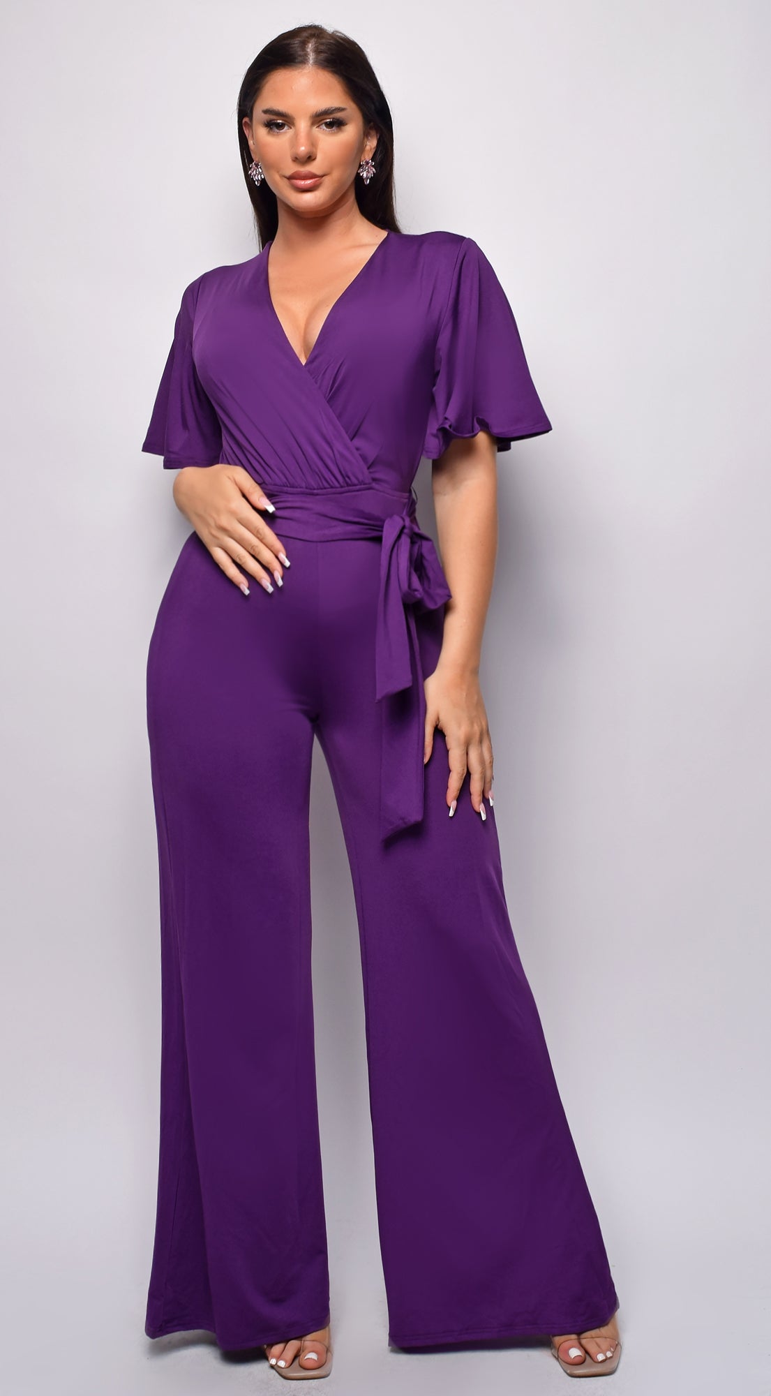 Bombay V Neck Jumpsuit - Purple