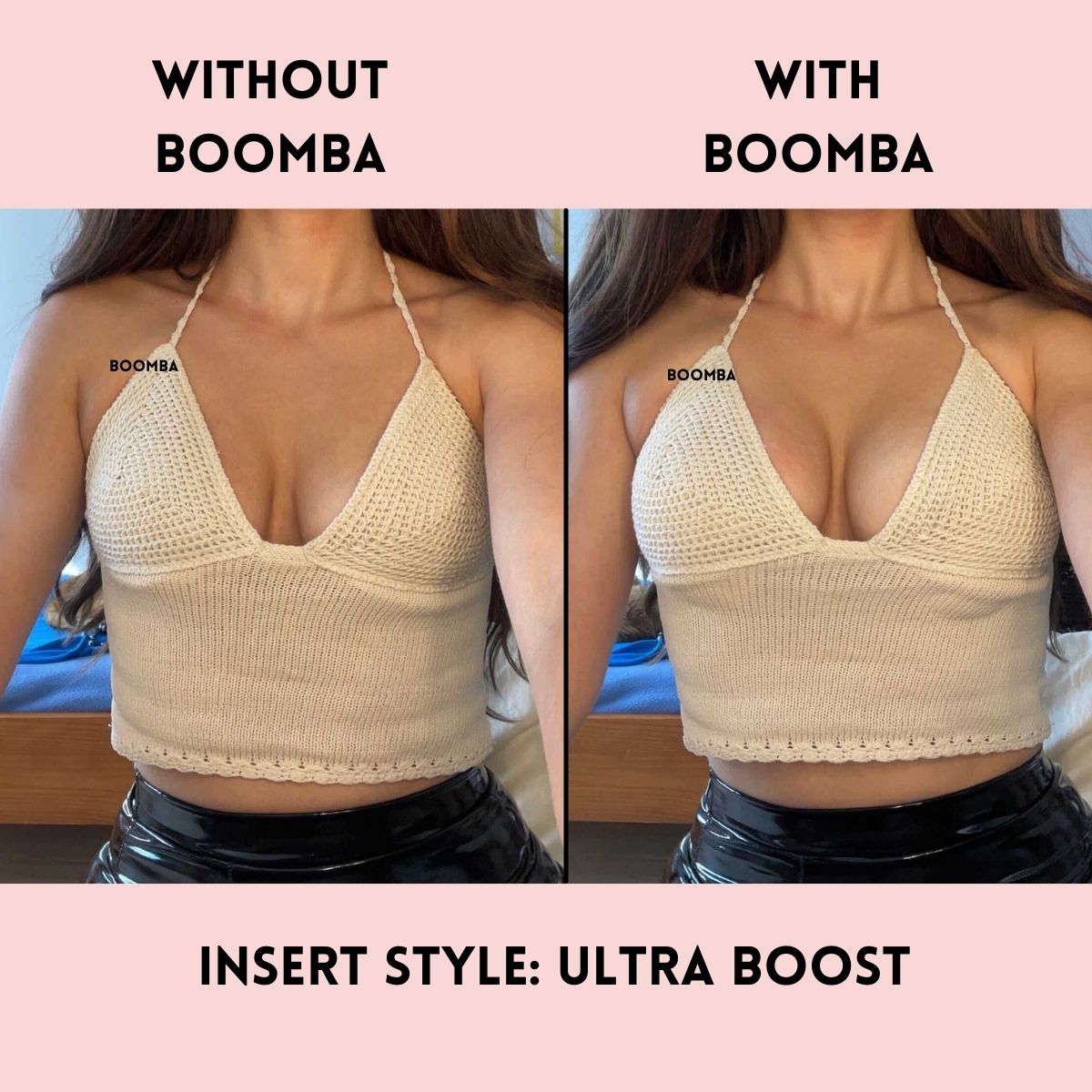 Unlike a sticky bra that is supported by the adhesive, BOOMBA inserts are supported by the clothing and cannot stay up by themselves. It is crucial to wear them in tight, structured, and fitted tops.
