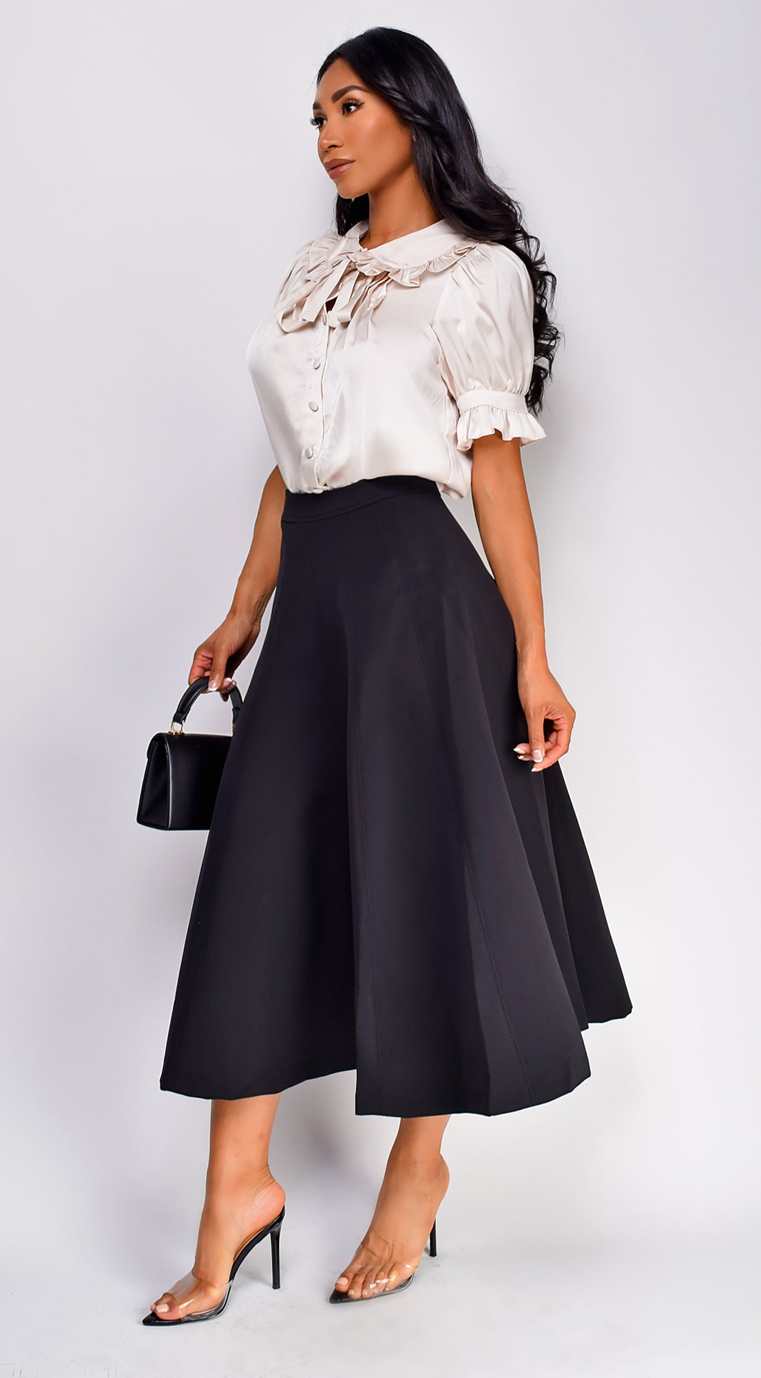 Brea Neck Tie Shoulder Shirring Blouse - Cream