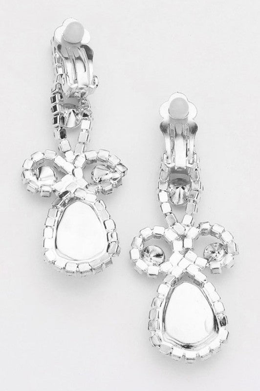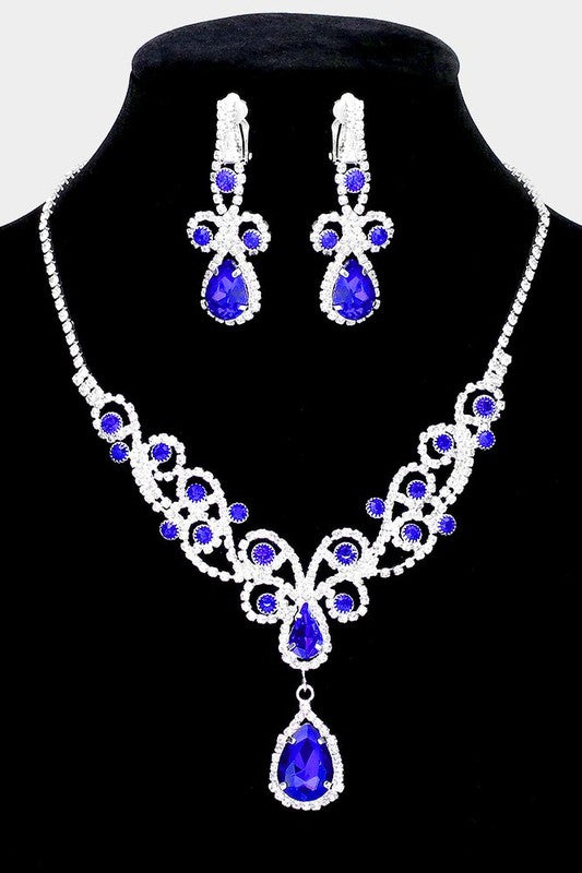 Confidence Blue Teardrop Crystal Rhinestone Vine Drop Collar Necklace & Clip on Earrings Set