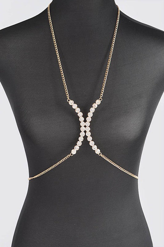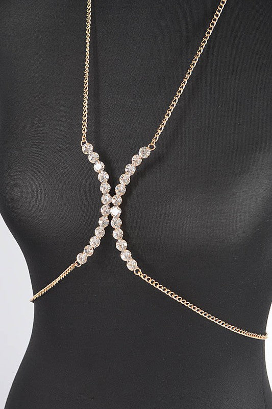 Crystal Glam Rhinestone Bra Chain - Gold