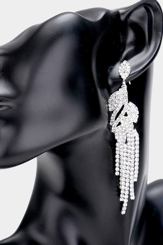 Crystal Leaf Drop Rhinestone Earrings