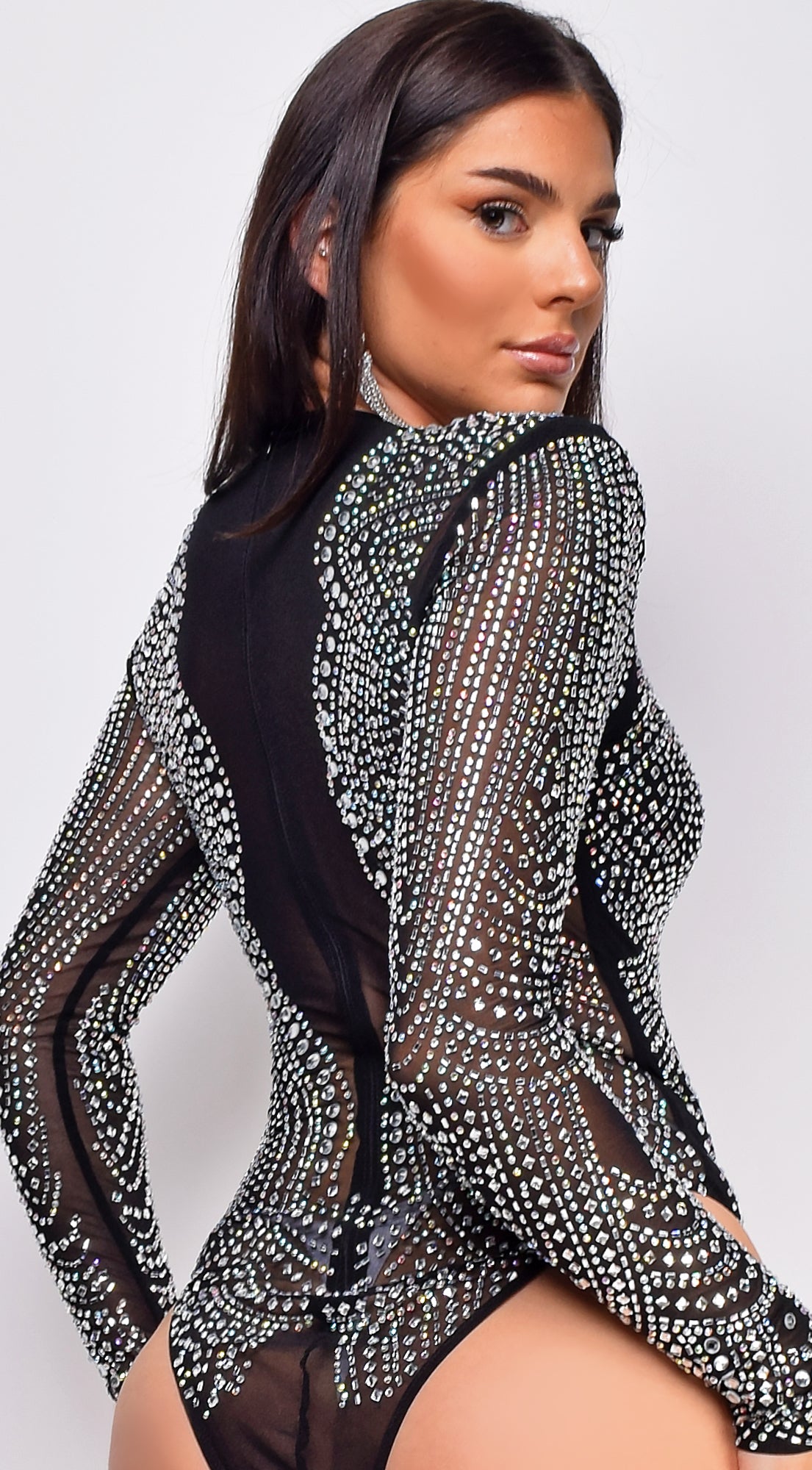 Daphne Black Mesh Rhinestone Bodysuit