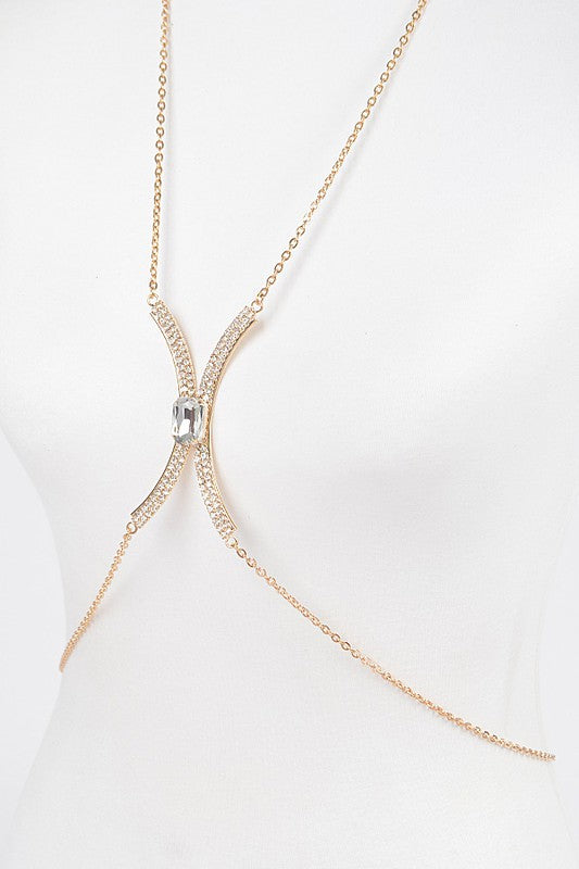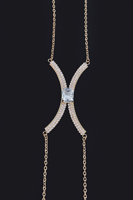 Dazzle Embrace Rhinestone Bra Chain - Gold