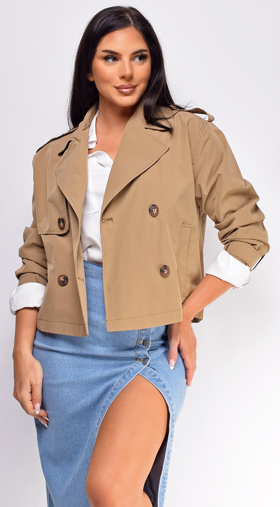 Devin Cropped Trench Jacket - Beige
