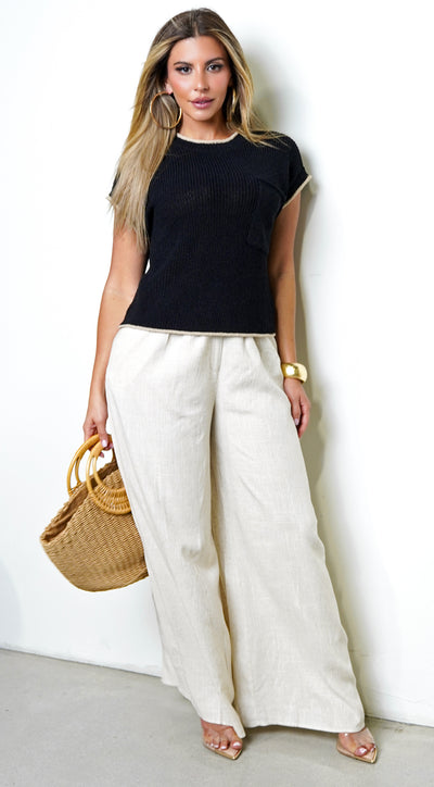 Gabrielle Contrast Trim Short Sleeve Top - Black