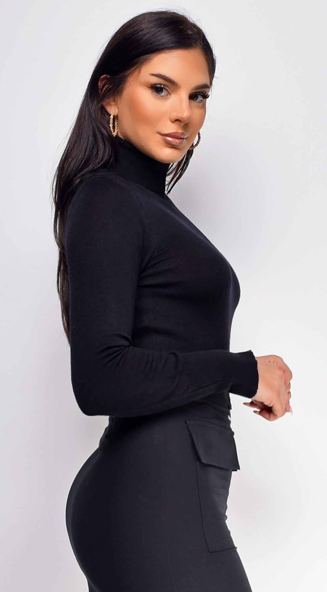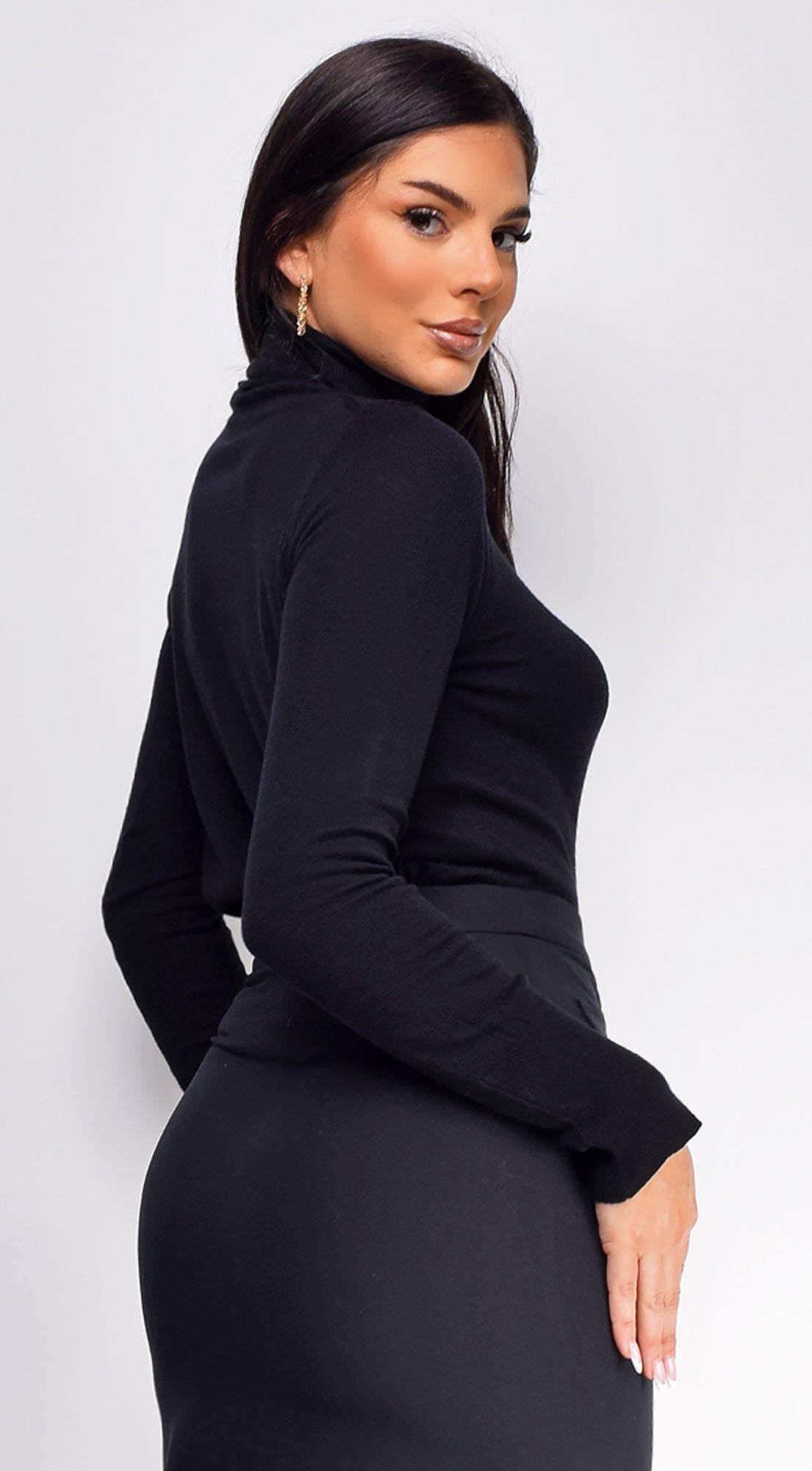 Gigi High Neck Long Sleeve Top - Black