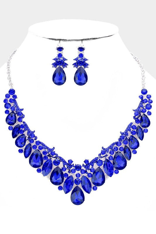 Give Me Your Attention Blue Teardrop Marquise Stone Cluster Necklace & Earrings Set