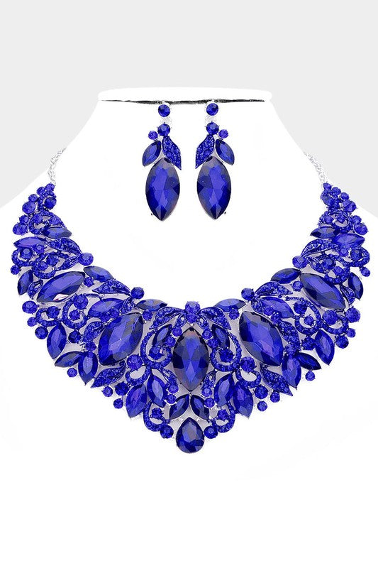 Glimmer Blue Sapphire Leaf Marquise Stone Necklace & Earrings Set