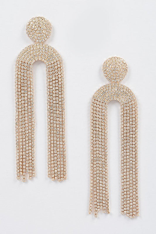 High Stakes Rhinestone Drop Earrings - Gold