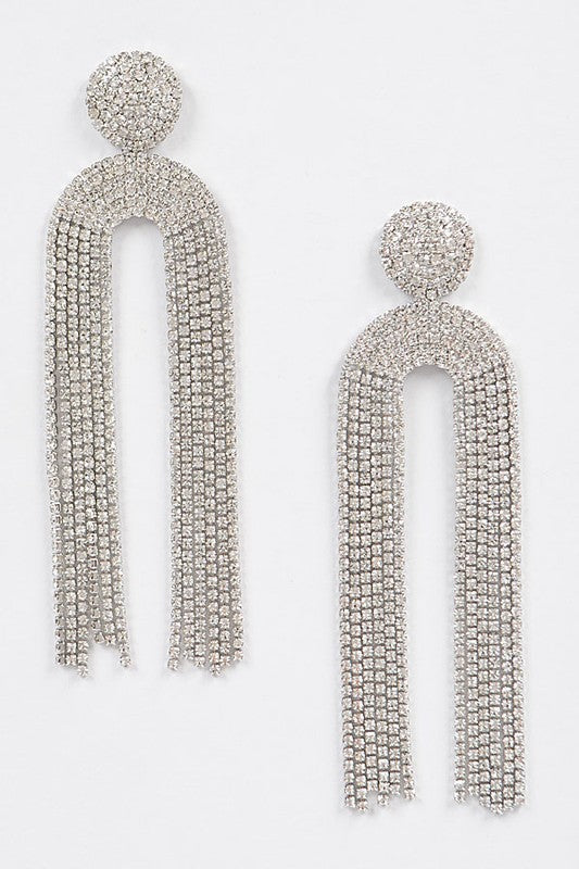 High Stakes Rhinestone Drop Earrings - Silver