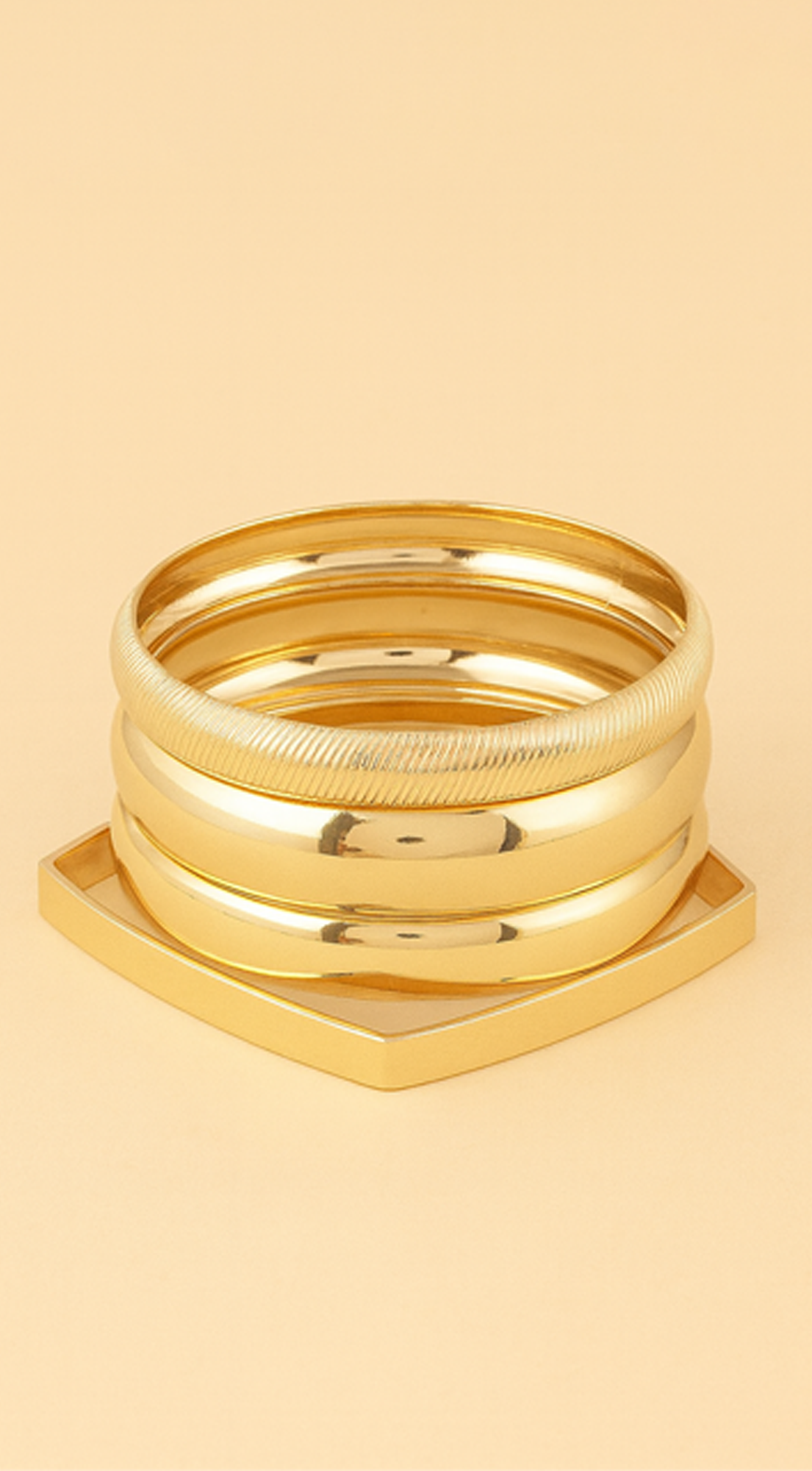 Lustre Layers Multi-Shape Shiny 4 Piece Set Bracelets - Gold
