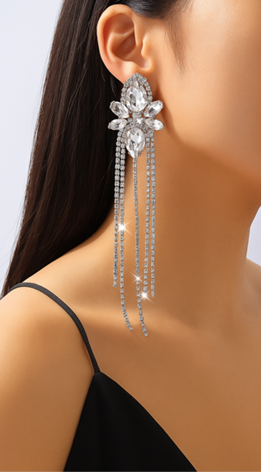 - Long Tassel Crystal Drop Earrings