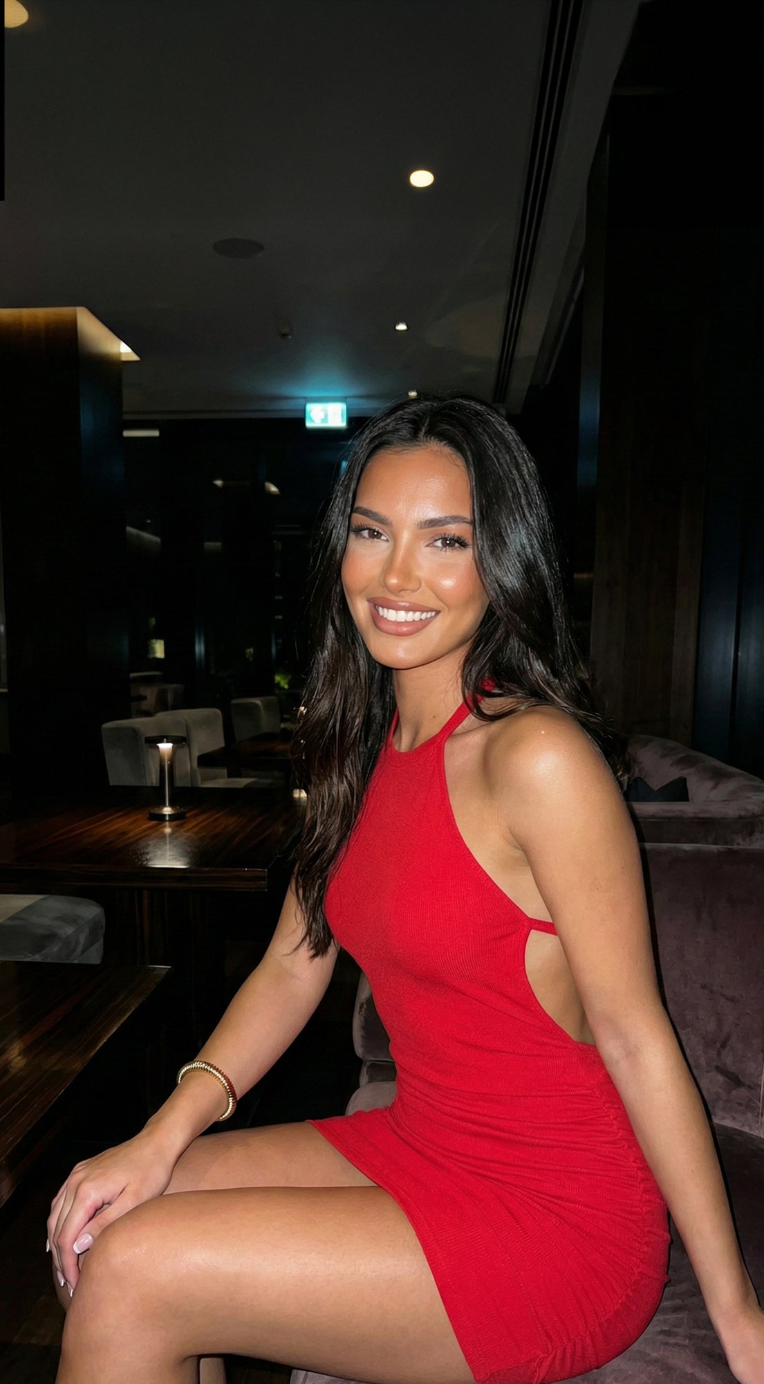 Olesya Open Back Ribbed Mini Dress - Red