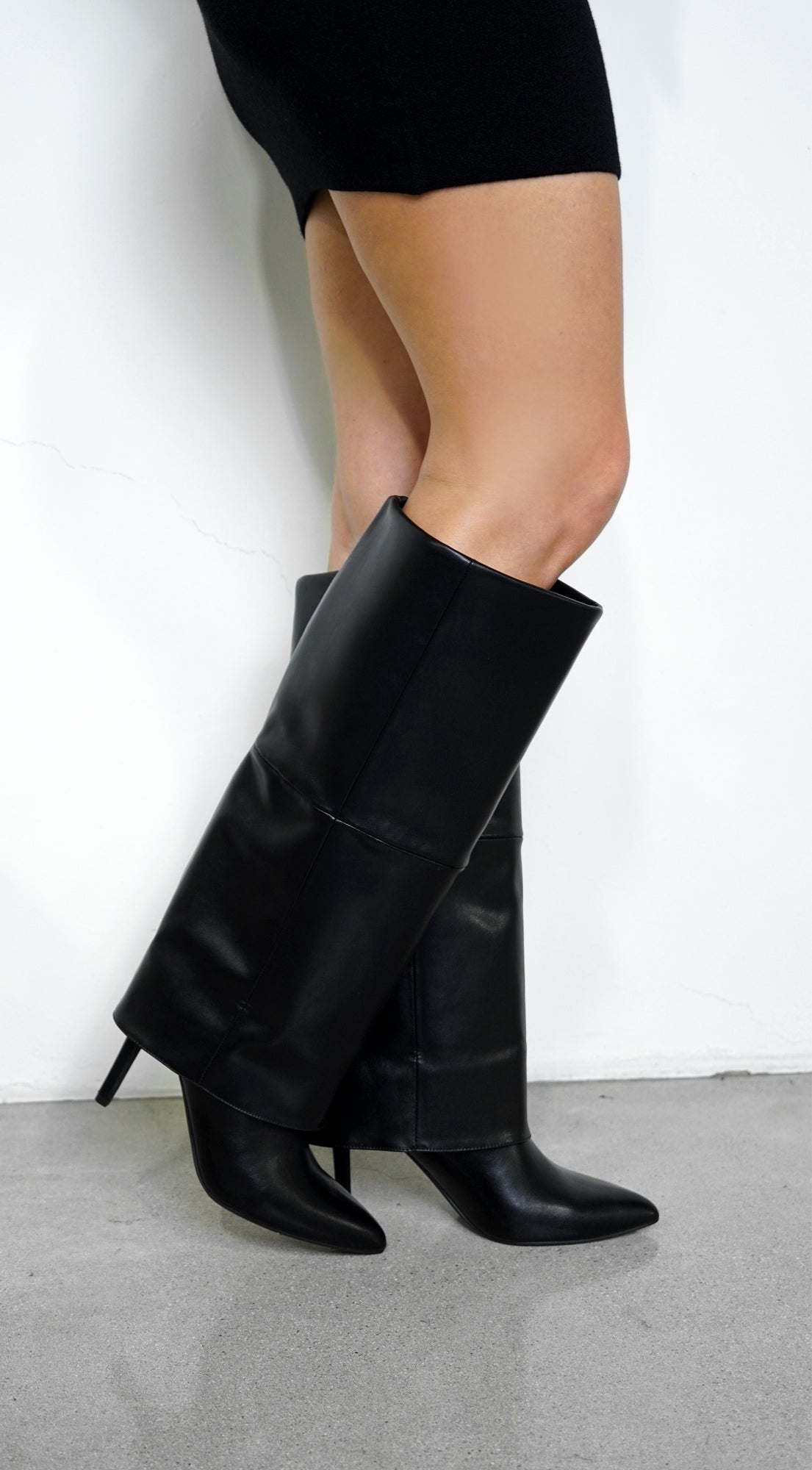 - Point toe stiletto fold-over knee boot