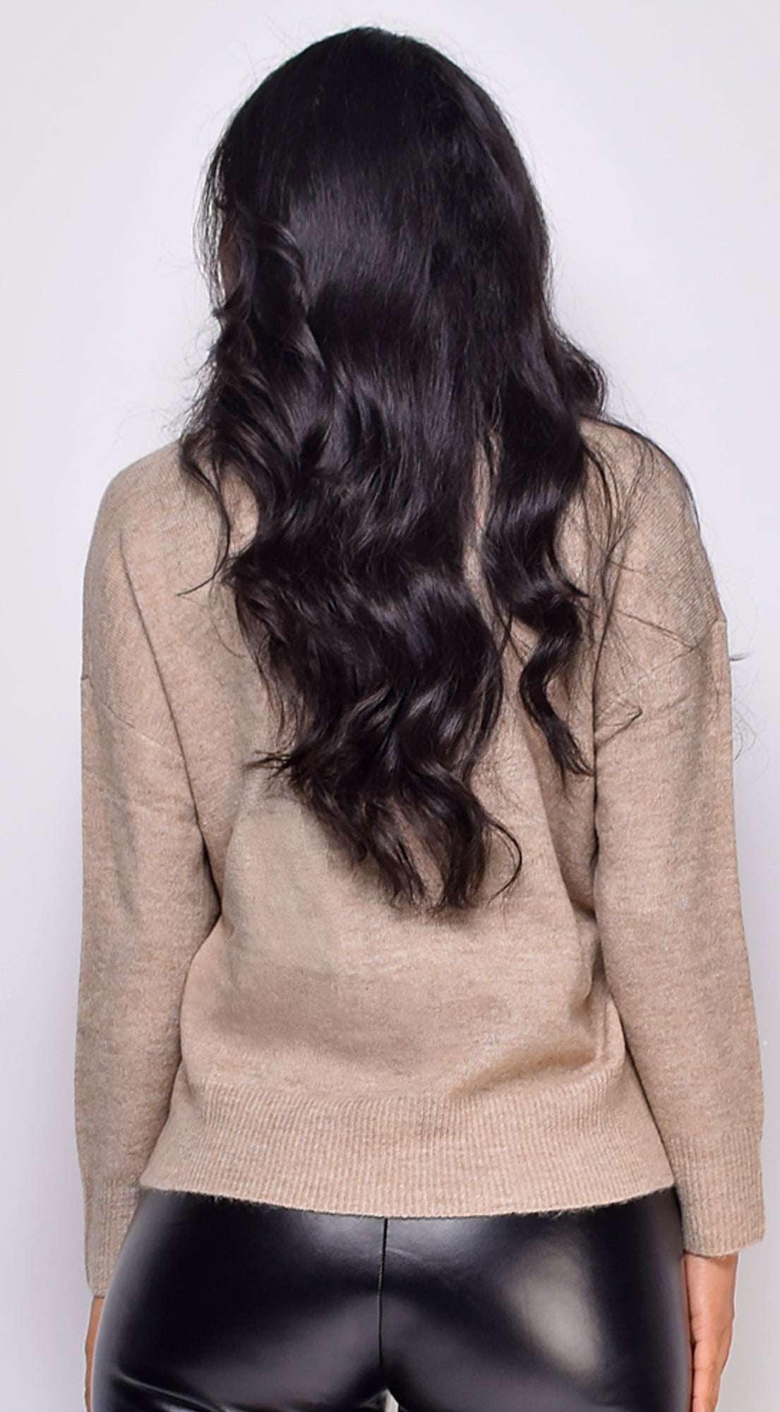 Remy V Neck Drop Shoulder Sweater Top - Taupe