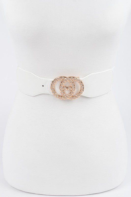 Rhinestone White Elastic Belt