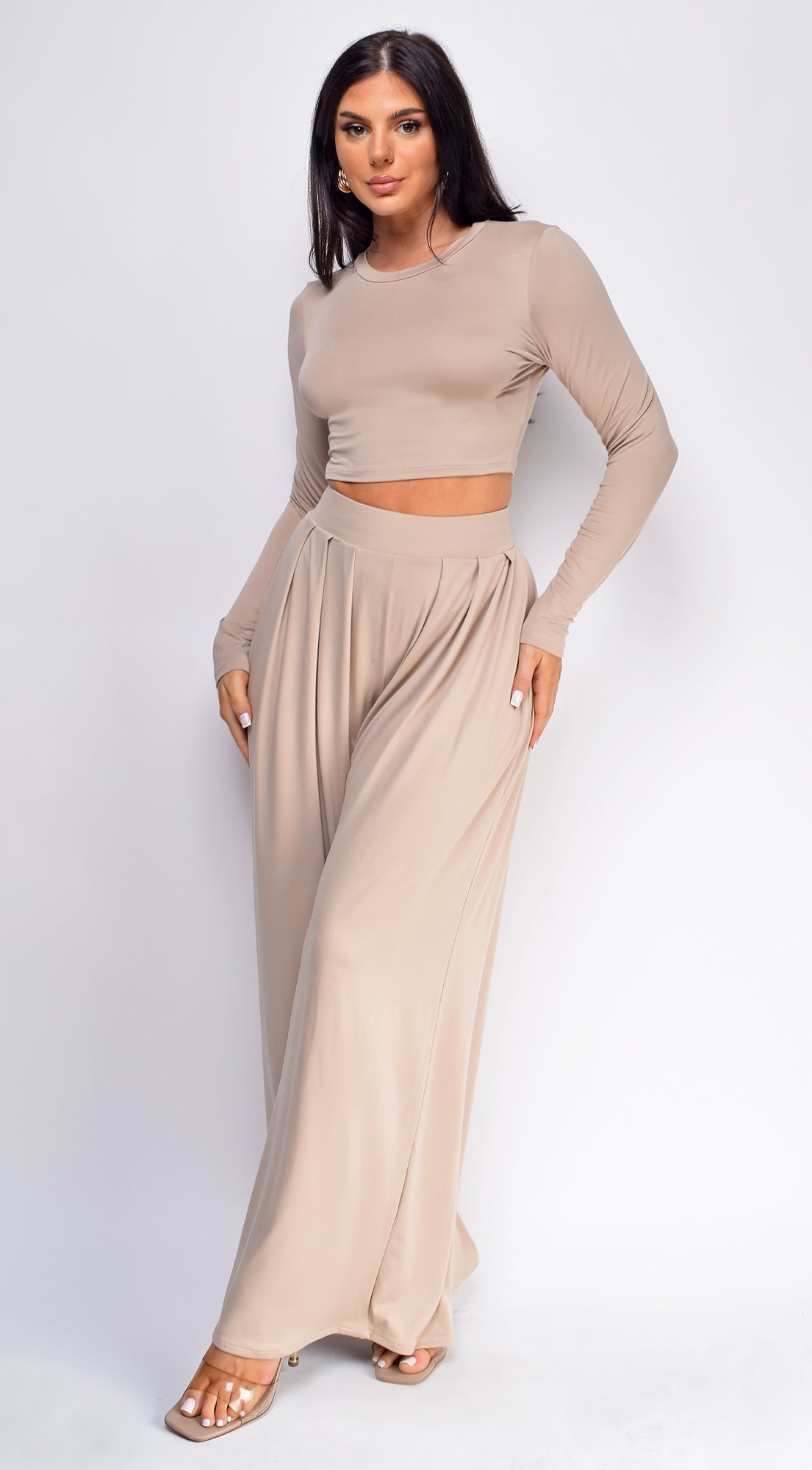 Riona Taupe Beige Wide Leg Pants Set