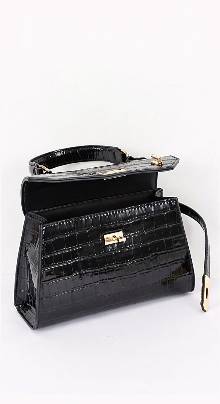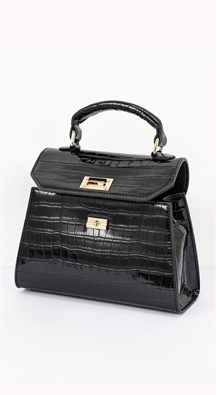Siena Vegan Leather Top Handle Shoulder Bag - Black