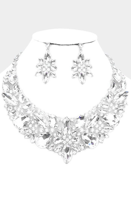 Sophistication Silver Multi Stone Evening Necklace & Earrings Set