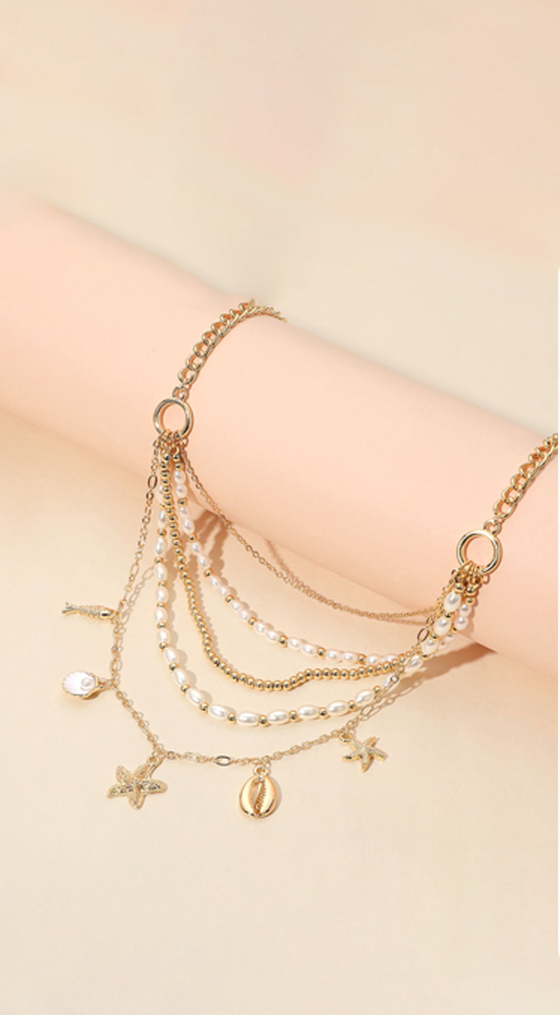Starfish Shell Pearl Metal Ball Layered Necklace - Gold