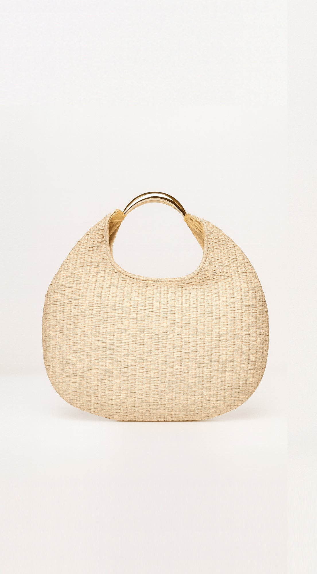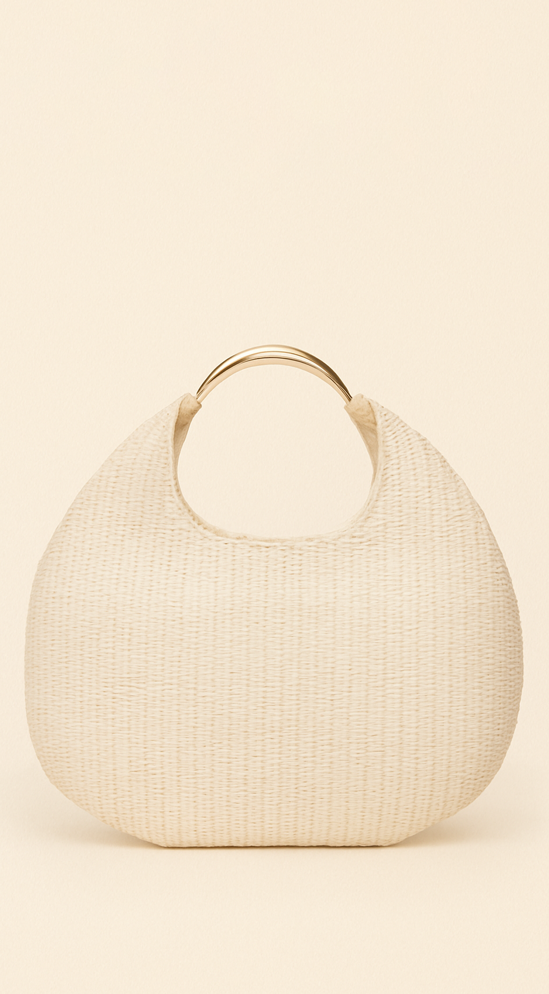 Sunhaven Faux Straw Metal Handle Hobo bag - Beige