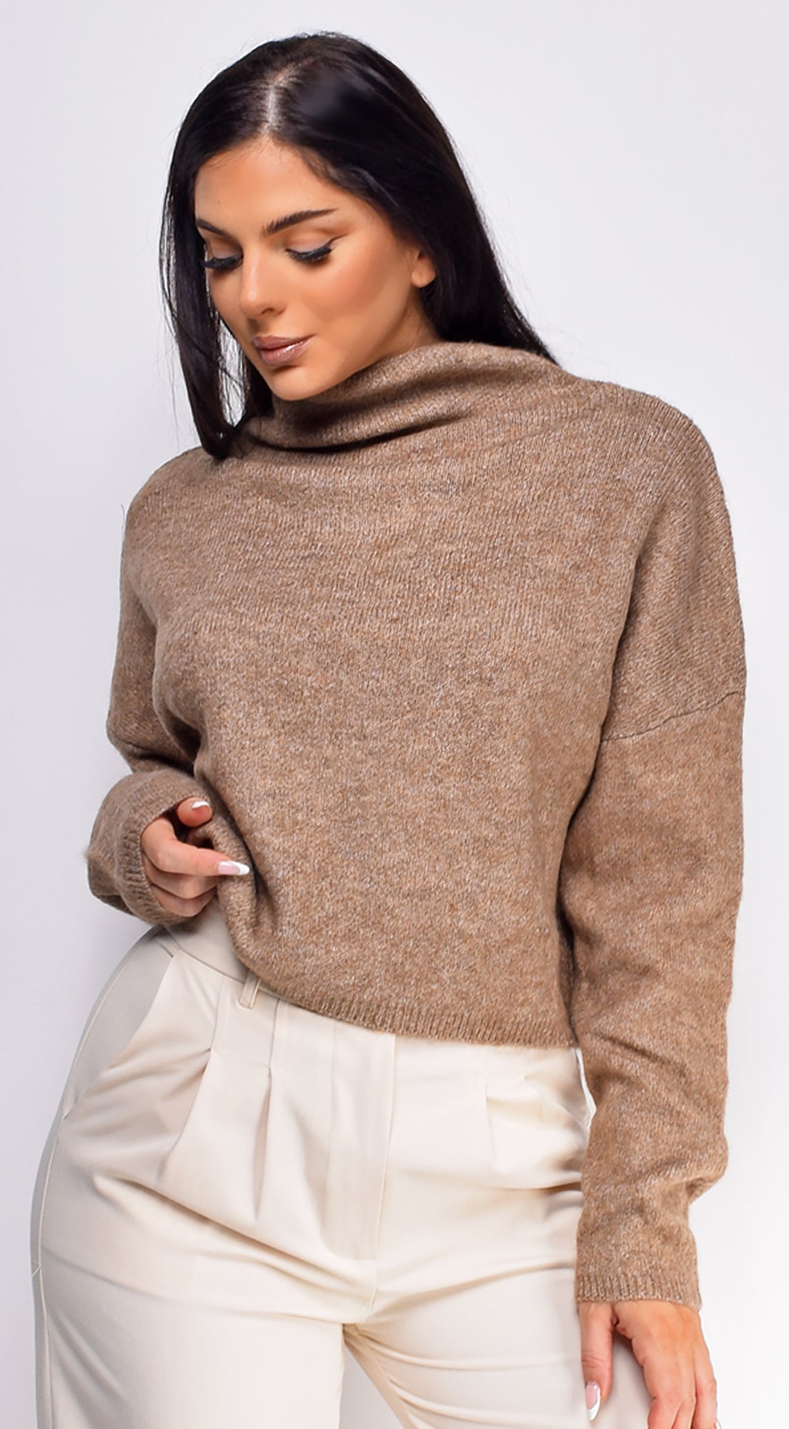 Surya Brown Marl Knit Mock Neck Sweater Top