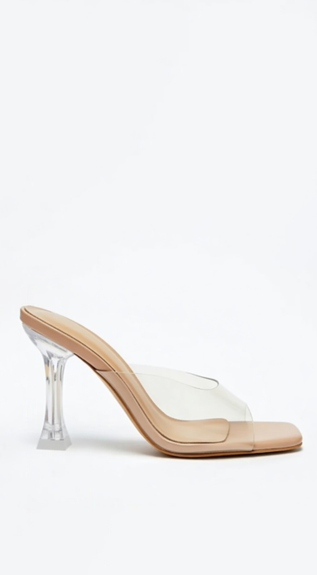 Victoria Clear Strap Mule Heels - Beige
